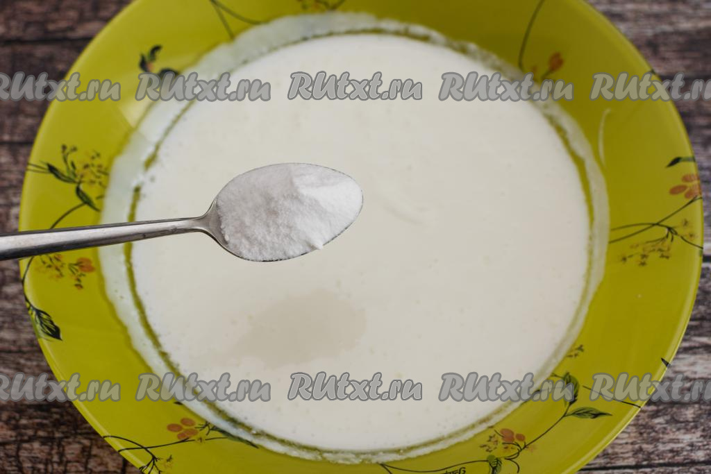 Постепенно сода вступит в реакцию с кислой средой кефира. Кефир увеличится в объёме и покроется пузырьками.