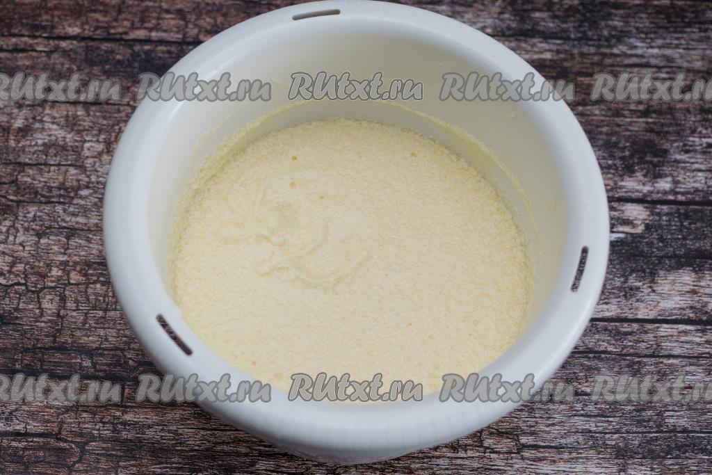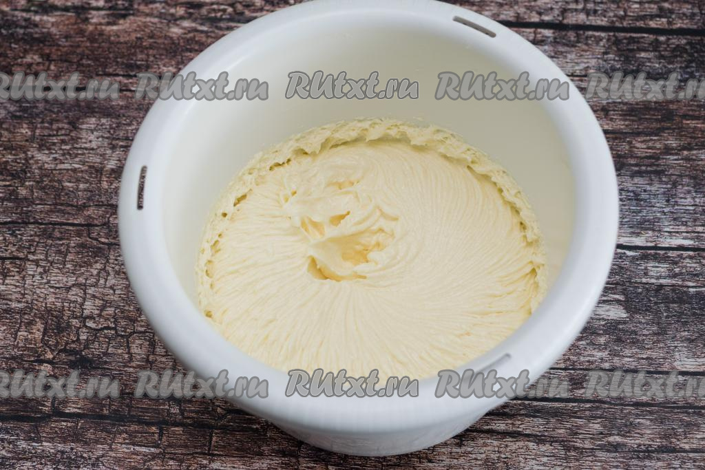После того как все яйца будут вмешаны, взбить масляно-яичную массу миксером до побеления (в течение 3-4 минут).