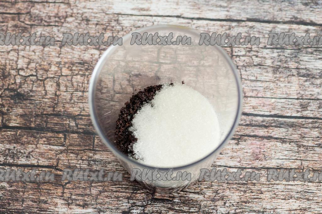 Переложить запаренный мак в чашу погружного блендера, туда же всыпать сахар.