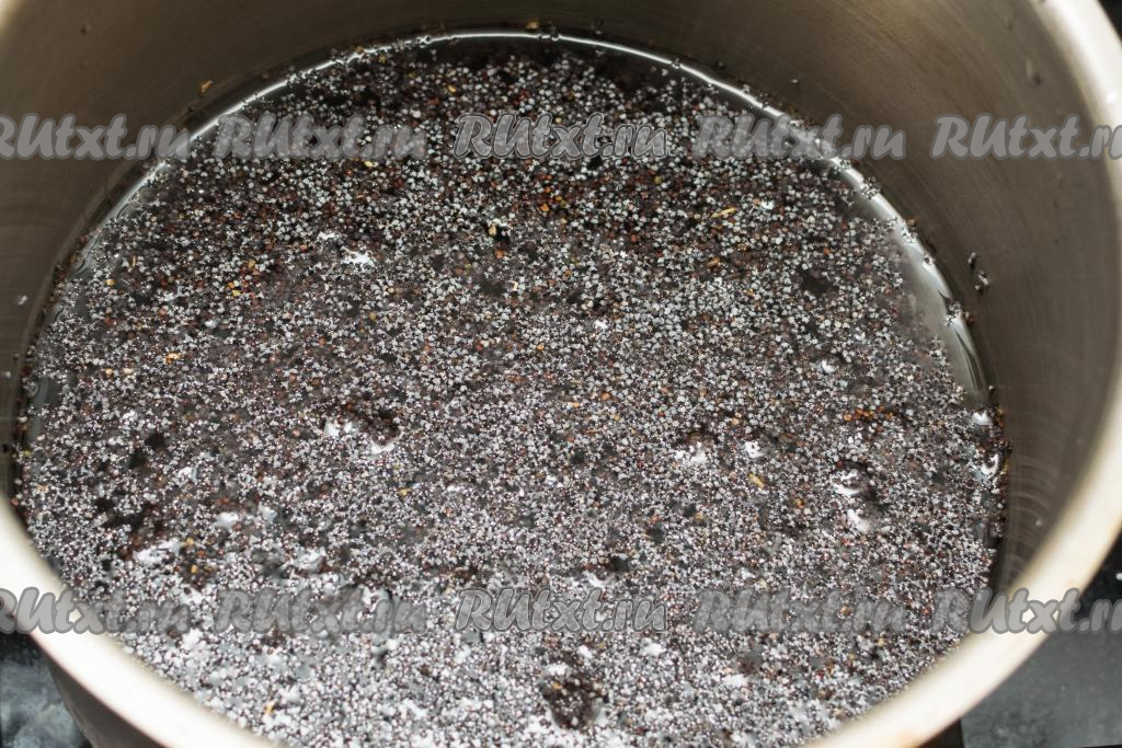 После закипания воды уменьшить огонь, варить мак 5 минут, периодически перемешивая столовой ложкой.