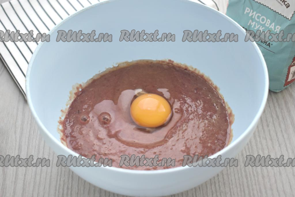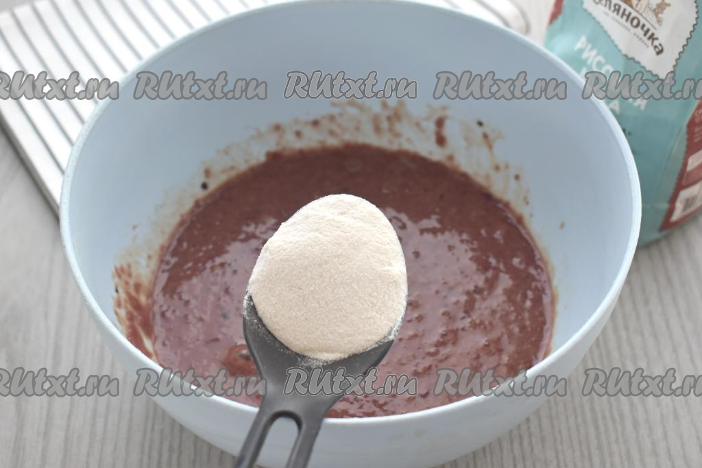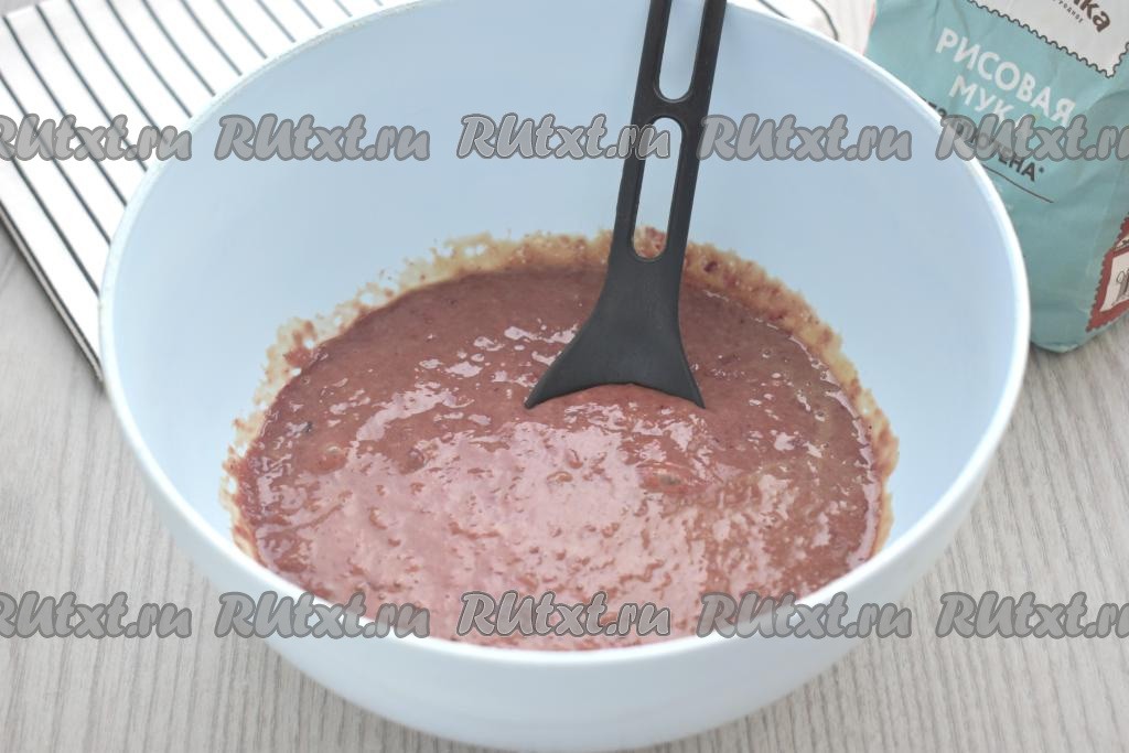 Далее в печёночный фарш всыпаем по 1 столовой ложке рисовой муки, перемешивая до однородности после добавления каждой порции муки. Муки нужно столько, чтобы печёночный фарш стал вязким, как сметана средней густоты. Я в общей сложности для получения фарша нужной густоты добавила 2,5 столовых ложки рисовой муки.