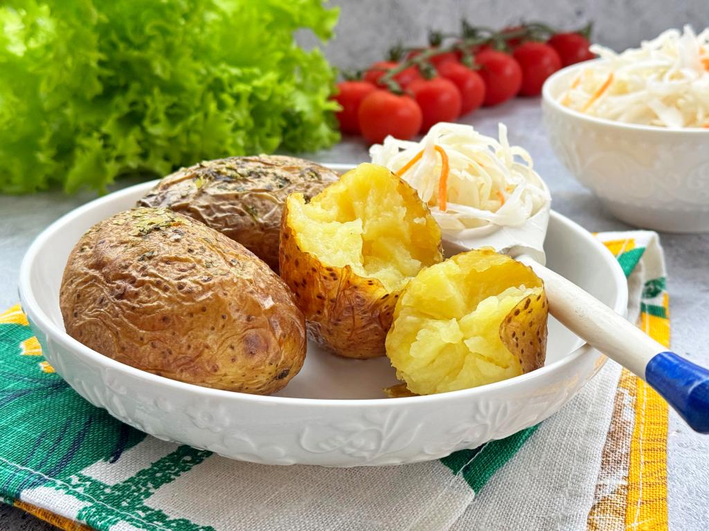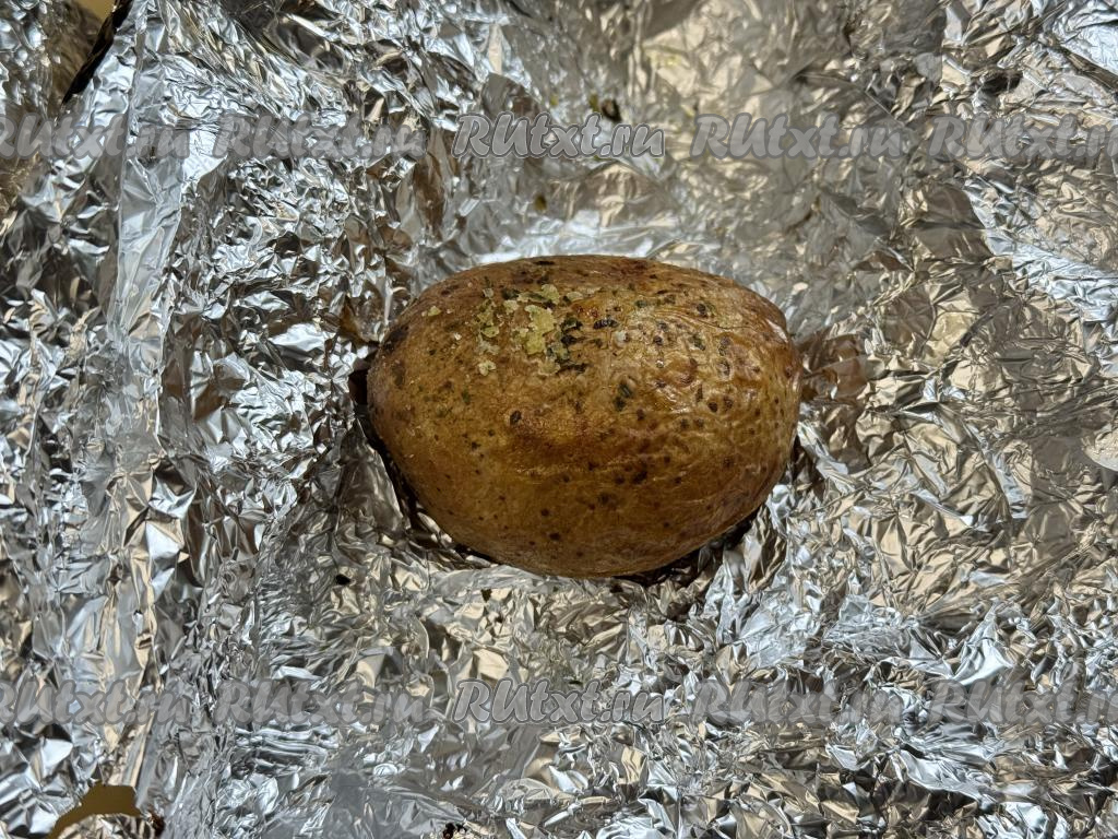 А вот как аппетитно в разломе выглядит картошка, запечённая целиком в фольге в аэрогриле.