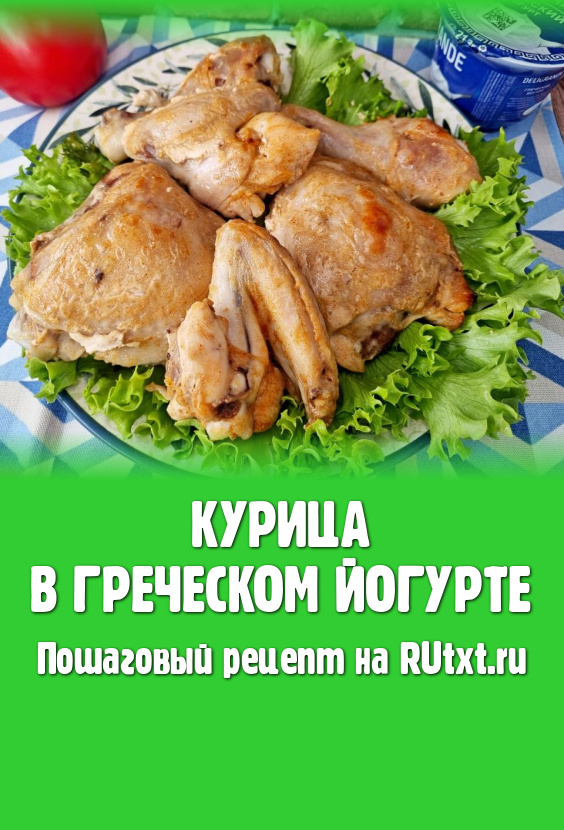 Запекать курицу в греческом йогурте в разогретой до 180 градусов духовке в течение 40-50 минут. Готовность мяса проверяйте по бедру, для этого проткните зубочисткой бедро в мясистой части, если выделяется прозрачный сок без примесей крови, значит мясо готово.