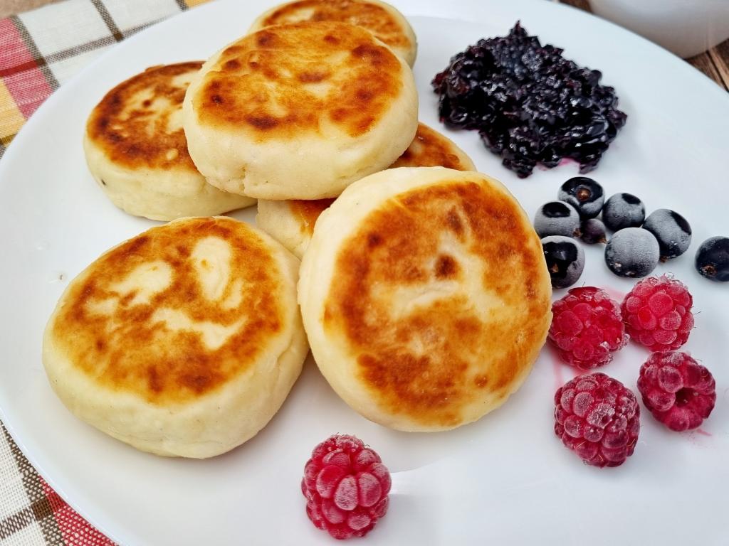 Сырники, приготовленные из творога без добавления манки на сковороде по этому классическому рецепту, получаются румяными, пышными, нежными. К столу их лучше всего подавать горячими, дополнив вареньем, мёдом или сметаной.