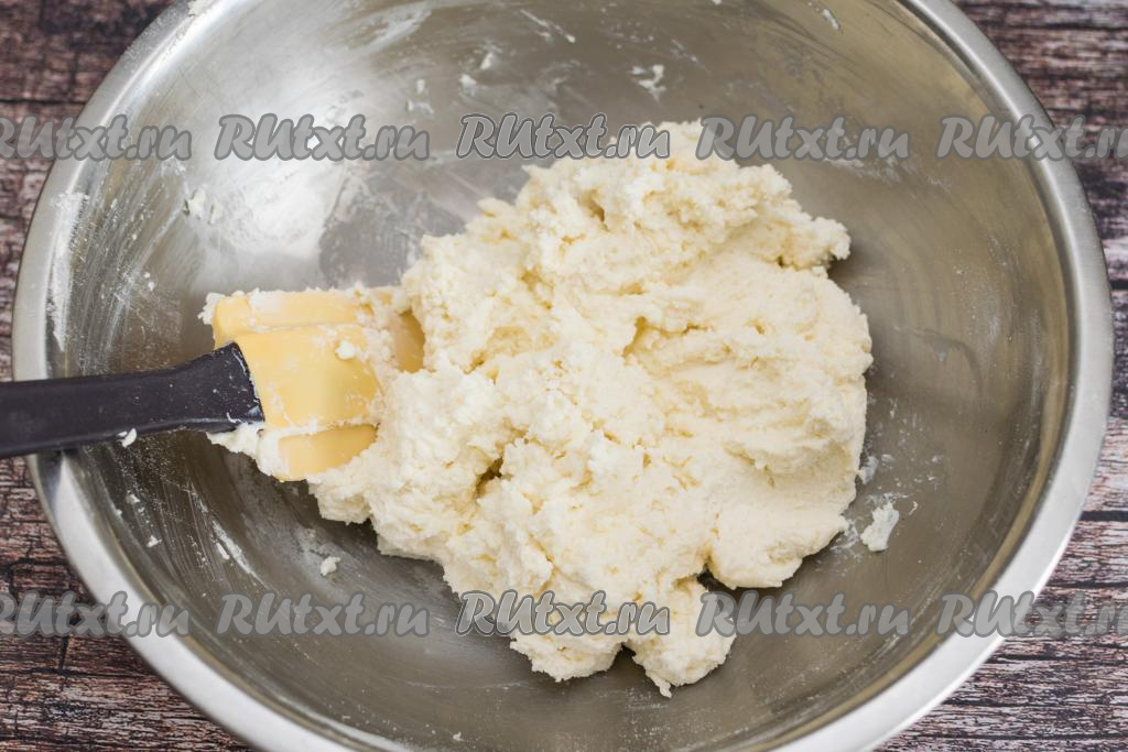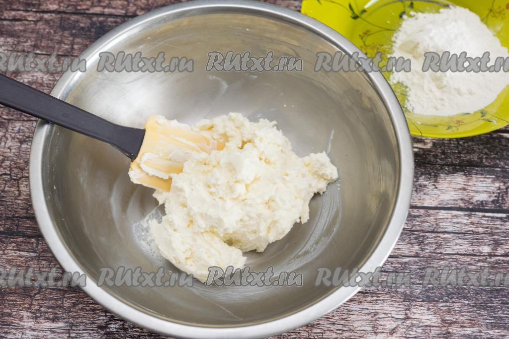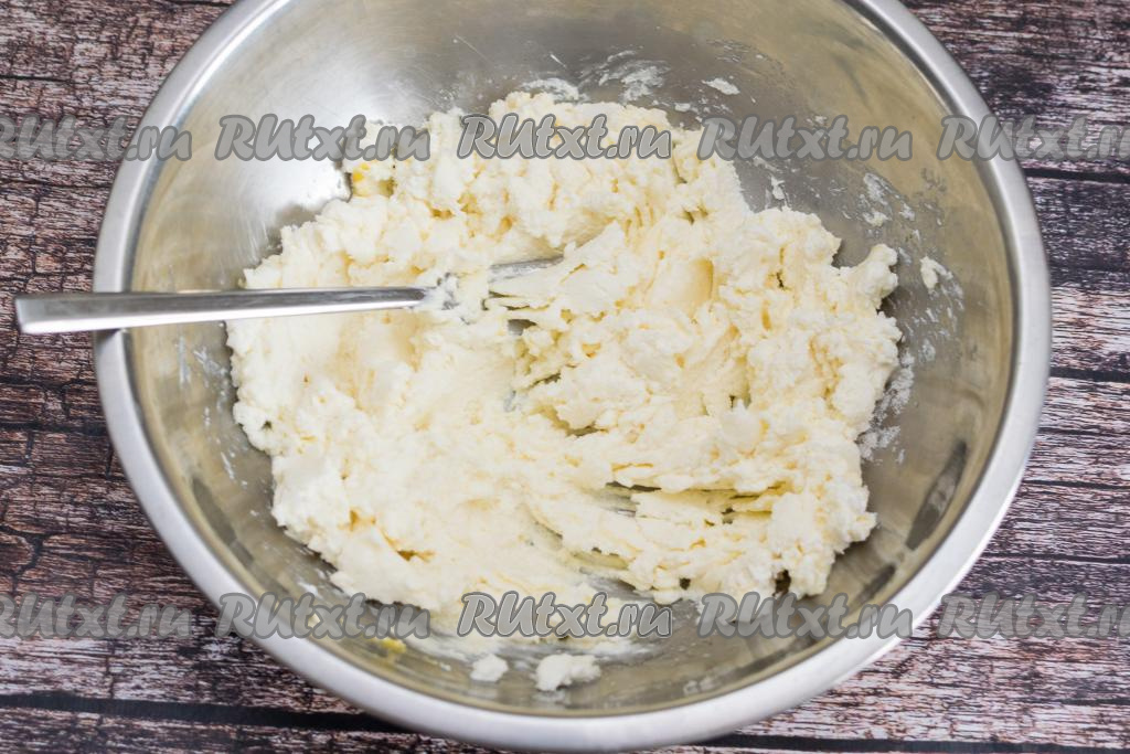 После того как я разминаю творожную массу вилкой, я довожу её до однородности силиконовой лопаткой.