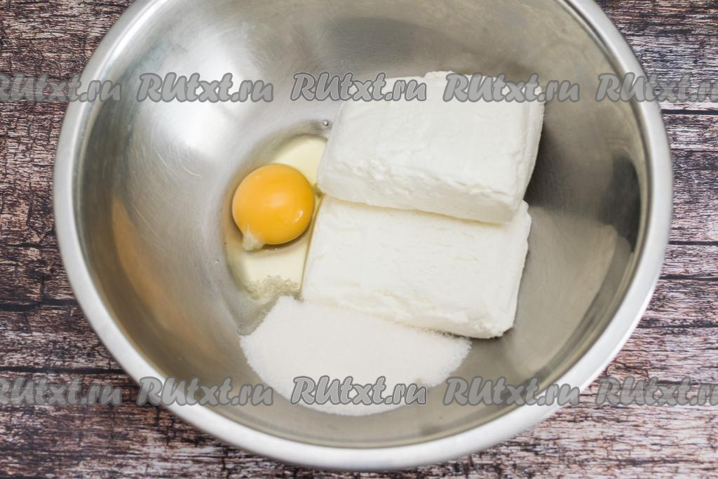 Если творог однородный, как у меня, тогда достаточно смешать творог с яйцом и сахаром обычной вилкой, разминая небольшие комочки творога, если они есть. Если же творог сильно крупинчатый, тогда лучше пробить творог с яйцом и сахаром погружным блендером, чтобы точно была однородная масса.