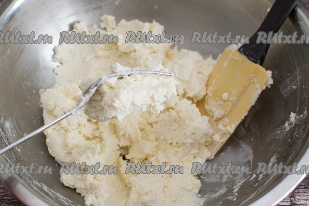 Итоговое тесто для сырников должно получиться комковатым, как на фото, липким, но при этом из него можно слепить округлую заготовку сырника и она будет держать форму.