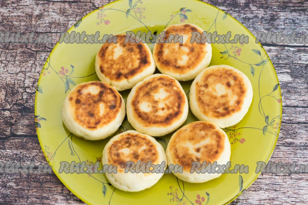 Готовые сырники переложить со сковороды на плоскую тарелку. Излишки масла можно убрать при помощи бумажных салфеток.
