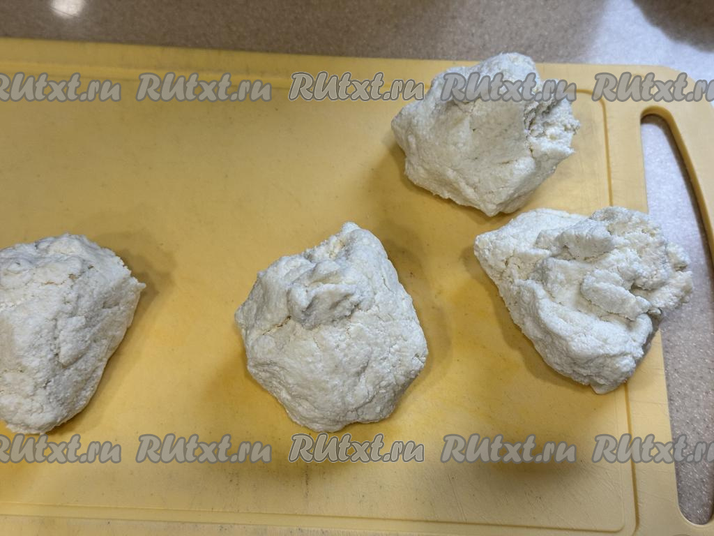 Разделить тесто на 4 равных части.