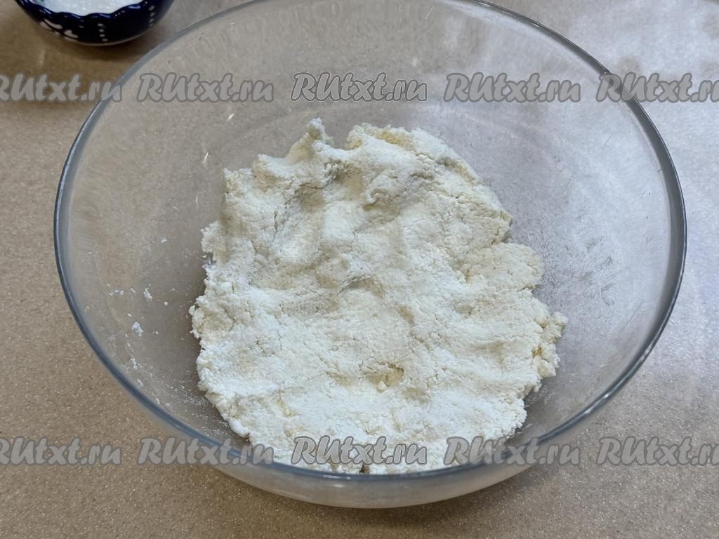 А затем вымесить его руками. Творожное тесто для ватрушек должно получиться однородным, пластичным, не липнущим к рукам.