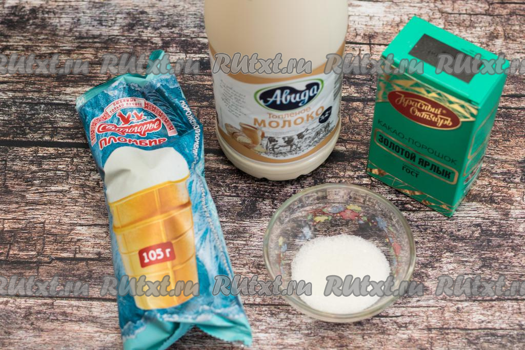 Подготовить продукты. Молоко должно быть хорошо охлаждённым. Я взяла молоко жирностью 3,2%, но для приготовления коктейля подойдёт молоко любой жирности. Мороженое лучше брать без добавок, идеально - "Пломбир".