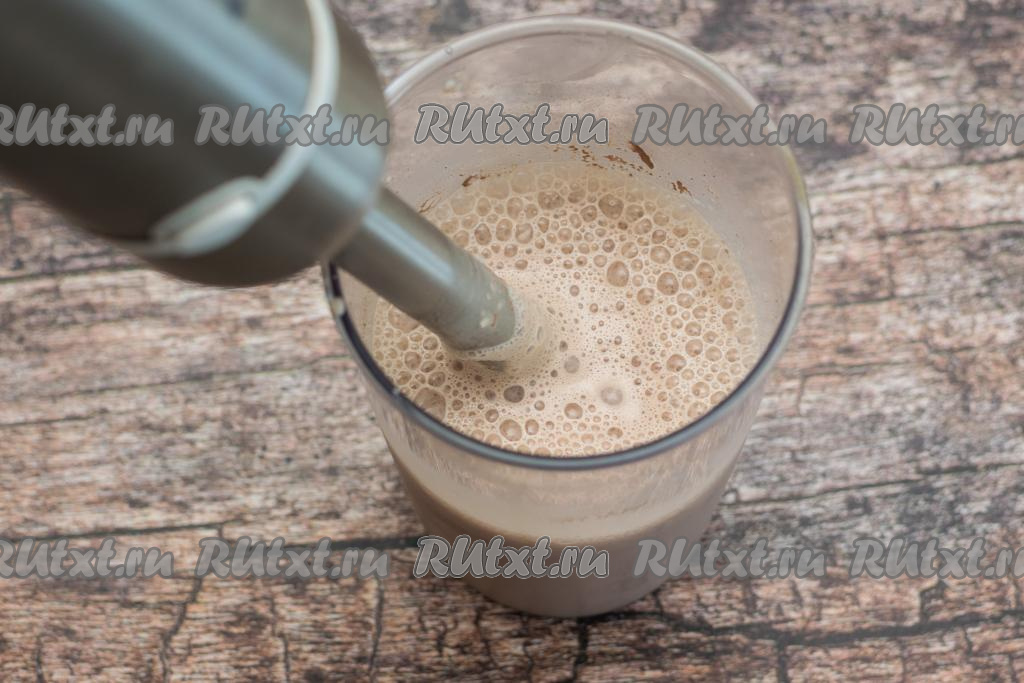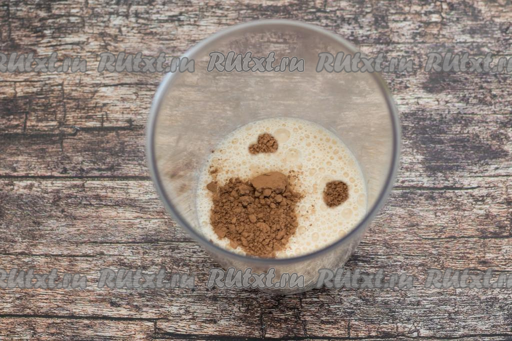 В чашу блендера для взбивания влить охлаждённое молоко, всыпать какао.