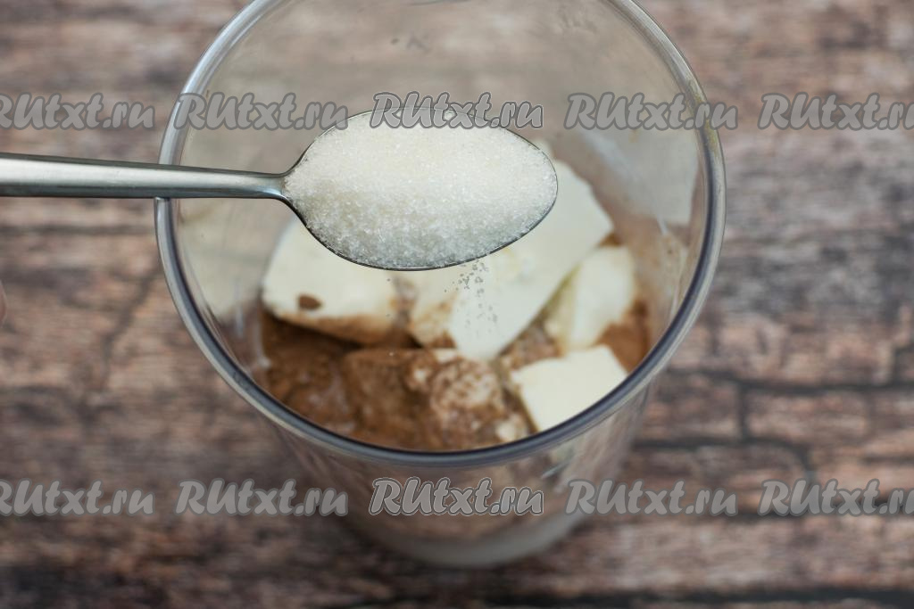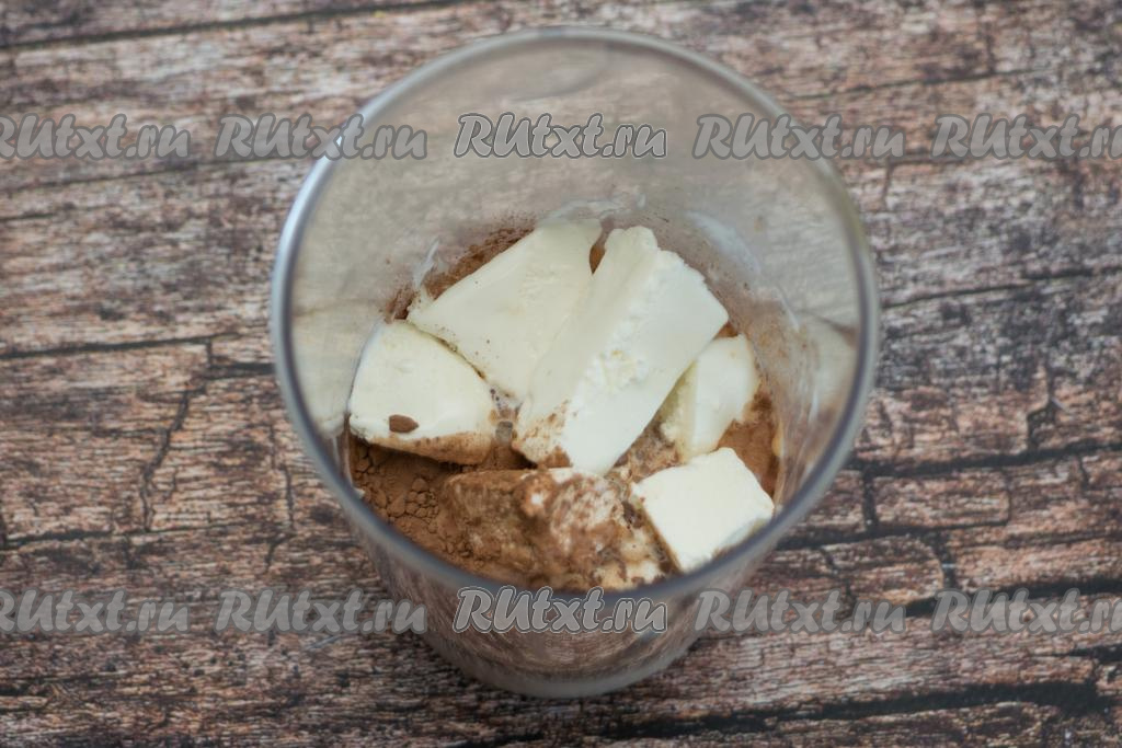 Добавить мороженое в чашу блендера к какао и молоку.