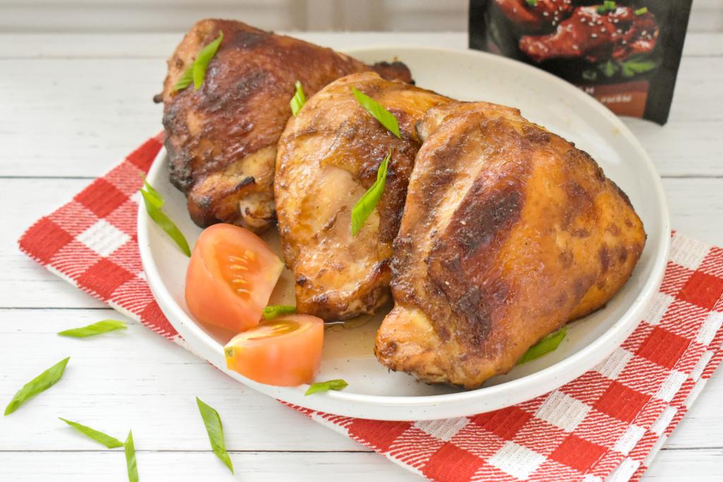 Для семейного обеда или ужина можно приготовить в аэрогриле куриные бёдра, предварительно замариновав их в соусе "Терияки". Бёдрышки в процессе запекания покрываются румяной, аппетитной корочкой, а внутри мясо становится сочным и нежным. Куриные бёдра, приготовленные в соусе "Терияки", при подаче можно дополнить любым гарниром из круп, макаронами или просто свежими овощами.