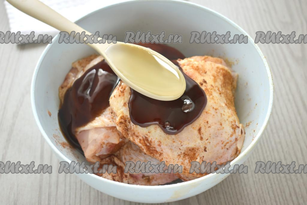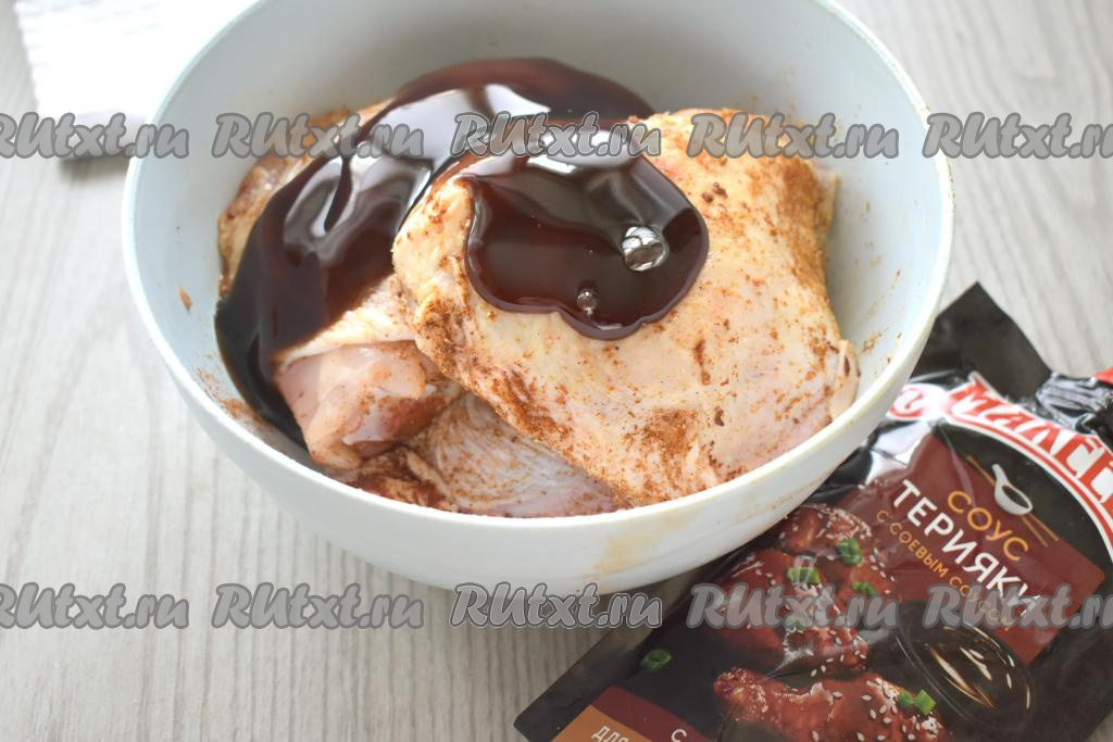 Добавляем к куриным бёдрам соус "Терияки".