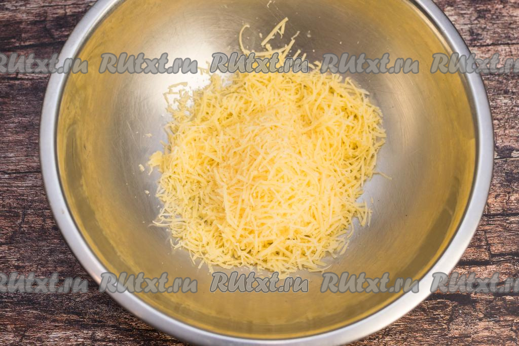 Пока гнёзда с ананасами запекаются в духовке, можно натереть на мелкой тёрке сыр.