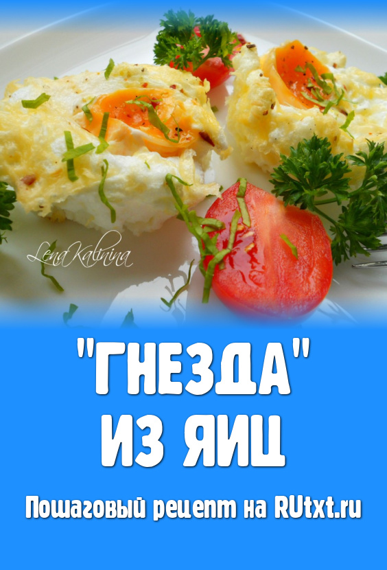 Формы поместить на противень и поставить в разогретую до 200 градусов духовку на 15 минут. Готовую яичницу переложить из формы на тарелку, полить растопленным сливочным маслом и посыпать зеленью. Подавать "гнезда" из яиц в горячем виде к завтраку. Белок обретает вкус, благодаря сыру, который еще образует и хрустящую корочку, а желток получается запеченным. Очень вкусно!