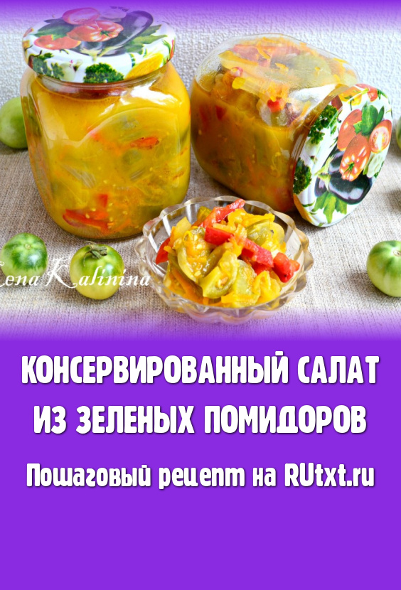 Готовый вкуснейший консервированный салат из зеленых помидоров разложить по стерилизованным баночкам и сразу же закатать. Перевернуть и укутать теплым одеялом до полного остывания. Хранить можно в городской квартире.