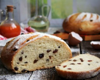 Добавить изюм в тесто. Перемешать тесто ложкой, а затем вымесить руками. Если тесто будет очень липнуть, смажьте руки маслом, но старайтесь не добавлять лишнюю муку. Добавить изюм в тесто. Подмешать изюм в тесто, сформировать колобок и выложить в миску, смазанную растительным маслом.