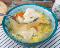 Тесто будет легко отделяться. Затем набирать по чайной ложке теста и сразу окунать ложку в суп. Тесто будет легко отделяться. Постепенно отсадить всё тесто, сформировав вот такие клёцки.