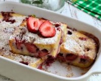 Тесто для приготовления клафути с клубникой получится довольно жидким. ... Залить клубнику подготовленным тестом. Залить клубнику подготовленным тестом. Выпекать клафути с клубникой в разогретой духовке при температуре 180 градусов минут 30.