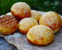 В процессе замешивания вначале перемешивать тесто ложкой, а когда оно соберётся в ком, переложить его на стол, присыпанный мукой, и, продолжая понемногу всыпать муку, замесить эластичное тесто, не липнущее ни к рукам, ни к столу. ... Затем, не ставя тесто на расстойку, сразу разделить его на 8 равных кусочков. Затем, не ставя тесто на расстойку, сразу разделить его на 8 равных кусочков.