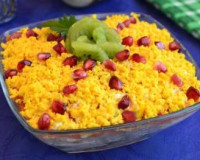 Предлагаю приготовить красивый слоёный салат из курицы с киви и корейской морковью. Этот салат получается очень интересным по вкусу, в нём есть и сладость, и кислинка, благодаря этому необычному сочетанию он получил название "Африка".