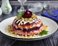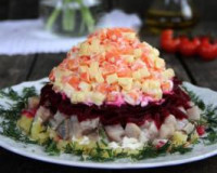 Предлагаю приготовить слоёный салат с селёдкой, картошкой и свеклой. По составу ингредиентов он очень напоминает салат "Селёдка под шубой", но всё же это не шуба.