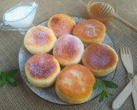 Подготовленные пышки выложить на сковороду, хорошо разогретую с растительным маслом, и жарить на среднем огне с двух сторон до зарумянивания (приблизительно, по 1,5 минуты с каждой стороны), затем накрыть крышкой сковороду, огонь уменьшить до минимума и готовить пышки ещё 2-3 минуты. Переложить готовые дрожжевые пышки со сковороды на тарелку, а из оставшегося теста сформировать и пожарить…