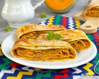 В этот раз предлагаю из лаваша сформировать рулет с начинкой из тыквы и запечь его в духовке. ... Присыпать всю тыкву сахаром и корицей. Начиная с более узкой стороны лаваша, свернуть лаваш с начинкой из тыквы в плоский рулет. Начиная с более узкой стороны лаваша, свернуть лаваш с начинкой из тыквы в плоский рулет.