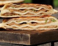 Перемешиваем содержимое миски и начинка из курицы и картошки для слоёного пирога готова. Перемешиваем содержимое миски и начинка из курицы и картошки для слоёного пирога готова. ... На одну сторону пласта помещаем начинку из курицы и картошки, оставив свободными края. Накрываем начинку второй стороной пласта, плотно скрепляем края, а в центре оформляем отверстие для выхода пара.