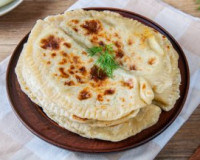 Накройте тесто плёнкой и дайте ему полежать 20 минут. Приготовьте начинку, для этого брынзу выложите в миску и разомните вилкой. Приготовьте начинку, для этого брынзу выложите в миску и разомните вилкой. ... Положите 1 столовую ложку смеси брынзы и зелени на одну половинку лепёшки, немного отступив от края. Накройте начинку свободной частью лепёшки и прижмите края вилкой. Накройте начинку свободной частью лепёшки и прижмите края вилкой.
