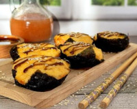 Разложить рыбную начинку по формам поверх риса. Разложить рыбную начинку по формам поверх риса. ... Выложить сырную начинку следующим слоем в наши суши. Выложить сырную начинку следующим слоем в наши суши.