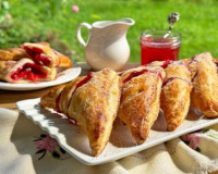 Они получились воздушными, вкусными, красивыми, с сочной, яркой ягодной начинкой. Эти аппетитные слойки идеально дополняют чаепитие в кругу семьи! ... Он желирует выделяющийся сок, поэтому начинка остаётся внутри слоек. Присыпать ягоды примерно 0,5 чайной ложки сахара.