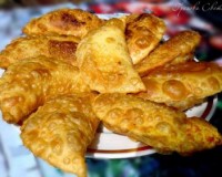 Каждую часть теста раскатываем в тонкий круг диаметром 17-18 см, сильно выравнивать края необязательно (сэкономим на этом время), так как мы все равно будем обрезать края по кругу при помощи тарелки или катка для чебуреков. На половину круга выкладываем начинку. Начинки надо класть, примерно, по 2 чайные ложки, визуально это будет смотреться как будто начинки многовато, не переживайте, так как в…