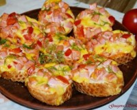 К нарезанным ингредиентам добавляем кетчуп и майонез, перемешиваем и начинка для мини-пицц готова. К нарезанным ингредиентам добавляем кетчуп и майонез, перемешиваем и начинка для мини-пицц готова. На кусочки багета выкладываем по 1 столовой ложке начинки с горкой. На кусочки багета выкладываем по 1 столовой ложке начинки с горкой.
