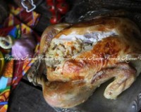Начинка получается яркой и аппетитной. Начинка получается яркой и аппетитной. Плотно нафаршировать куриное брюшко начинкой. Плотно нафаршировать куриное брюшко начинкой. При помощи зубочисток закрыть отверстия в районе шеи и в брюшке курицы.