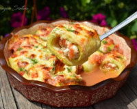 Добавляем сметану и перемешиваем, начинка для кабачковых рулетиков готова. Добавляем сметану и перемешиваем, начинка для кабачковых рулетиков готова. ... Скатываем из начинки шарики. Шариков нужно столько, сколько пластин из кабачков у нас получилось.