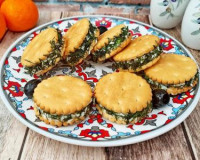 По сути, это бутерброды на крекерах с начинкой их сыра, яиц, чеснока и зелени. Это блюдо относится к разряду закусок на один укус. ... На крекер выложить часть сырно-яичной начинки, сверху положить второй крекер, слегка прижать получившийся бутерброд на крекерах.