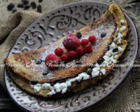 Готовится это блюдо за считанные минуты, получается вкусным, сытным и аппетитным. В роли начинки для овсяноблина будем использовать творог, к которому, по желанию, можно добавить капли шоколада, кокосовую стружку или свежие ягоды. ... По желанию, выложить на творог капли шоколада. Накрыть творожную начинку пустой половиной овсяноблина , сформировав полукруг. Накрыть творожную начинку пустой половиной овсяноблина, сформировав полукруг.