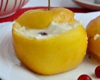 Печёные яблоки получаются очень нежными, мягкими, с вкуснейшей творожной начинкой. Этот полезный десерт можно быстро приготовить на завтрак, его с удовольствием будут есть и дети, и взрослые. ... Творог выложить в глубокую тарелку, добавить сахар и изюм, тщательно перемешать. Можно попробовать творожную начинку на вкус, если сладости вам недостаточно, тогда добавьте сахар по вкусу.