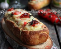 Фаршированный багет, запечённый в духовке, можно приготовить для перекуса. В роли начинки можно использовать ветчину, колбасу, сыр или мясной фарш. Я решила приготовить багет с начинкой из фарша и сыра, получилось очень вкусно, сочно, сытно и довольно просто. Чтобы начинка была более сочной, я добавила томатный кетчуп, а помидорами черри украсила верхушку.