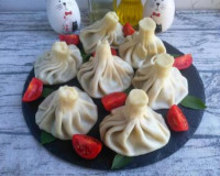Это мучные изделия, по форме напоминающие мешочек из теста с небольшой ножкой, с различными начинками. Готовят хинкали в кастрюле или на пару. В качестве начинки используется мясной фарш, сыр с зеленью, овощи или грибы. ... Для приготовления хинкали на пару в пароварке вам потребуется: вода очищенная - 120 мл (в тесто) + 3 ст. л. (в начинку); мука - 250 г; репчатый лук - 1 шт.; фарш (лучше взять фарш из свинины с говядиной) - 300 г; растительное масло - 1 ст. л.