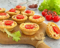 Недавно приготовила мини-пиццы в тарталетках в духовке и осталась очень довольна результатом. В качестве начинки взяла колбасу, сыр, маринованный огурец и помидоры. Мини-пиццы получились очень вкусными, аппетитными и достаточно сытными. При желании с начинкой вы можете экспериментировать, например, заменить колбасу на варёное куриное мясо.