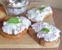 Закуска готова и её можно подавать на стол. Нежная солоноватая крабовая начинка на хрустящем хлебушке непременно понравится и вам, и вашим близким. ... Закуска готова и её можно подавать на стол. Нежная солоноватая крабовая начинка на хрустящем хлебушке непременно понравится и вам, и вашим близким.