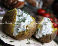 Запечь картофель в духовке очень просто. Главное - приготовить вкусную начинку для подачи картошечки. Я предлагаю нафаршировать запечённую картошку соусом из слабосолёной селёдки, солёного огурчика, лука и сметаны. ...