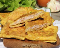 Сразу загнуть край яичного блина на начинку. Сразу загнуть край яичного блина на начинку. Затем загнуть два края, формируя конвертик. ... Благодаря сыру в начинке, блинчик "склеится" и будет прекрасно держать форму. Закрыть четвёртый край и перевернуть конвертик.