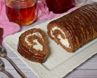 Бисквитная основа рулета великолепно сочетается с начинкой из творога и сливок. В начинку, по желанию, можно добавить свежие ягоды, топпинг , карамель или джем.
