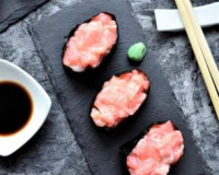 Это японское блюдо представляет собой спрессованный в брусочек рис, обёрнутый листом нори в виде чашечки, сверху которой располагается начинка из рыбы, икры, креветок и т.д. Подаются гункан суши традиционно с соевым соусом и васаби.