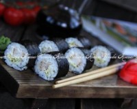 Аккуратно свернуть лист нори с начинкой в плотный рулет, начиная сворачивать с того края, на котором выложен рис. ... Аккуратно свернуть лист нори с начинкой в плотный рулет, начиная сворачивать с того края, на котором выложен рис.